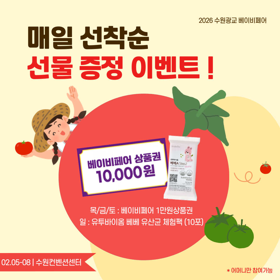 | [선착순 이벤트] 행사 기간 내내 매일 선착순 100명에게 선물 증정!!!! | |